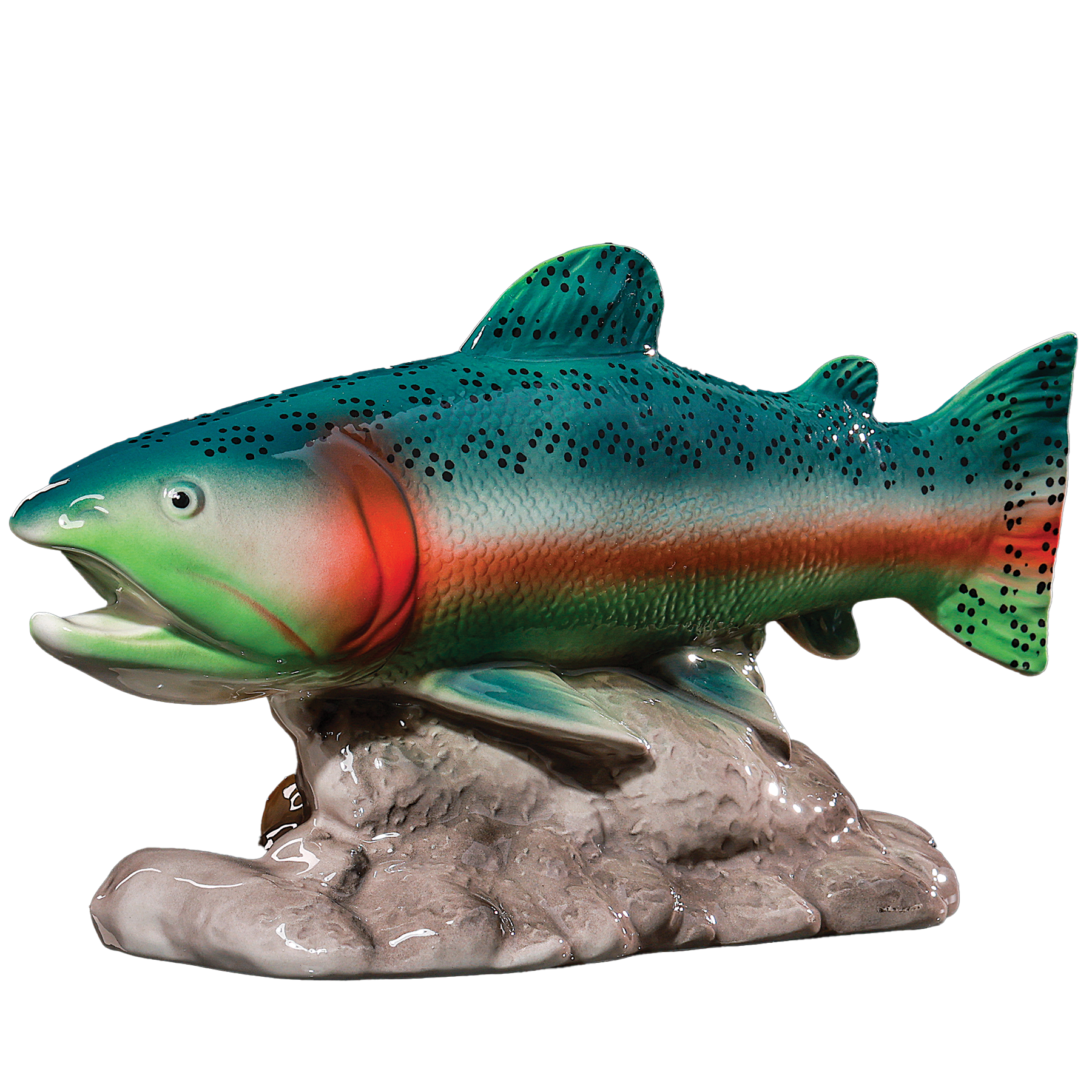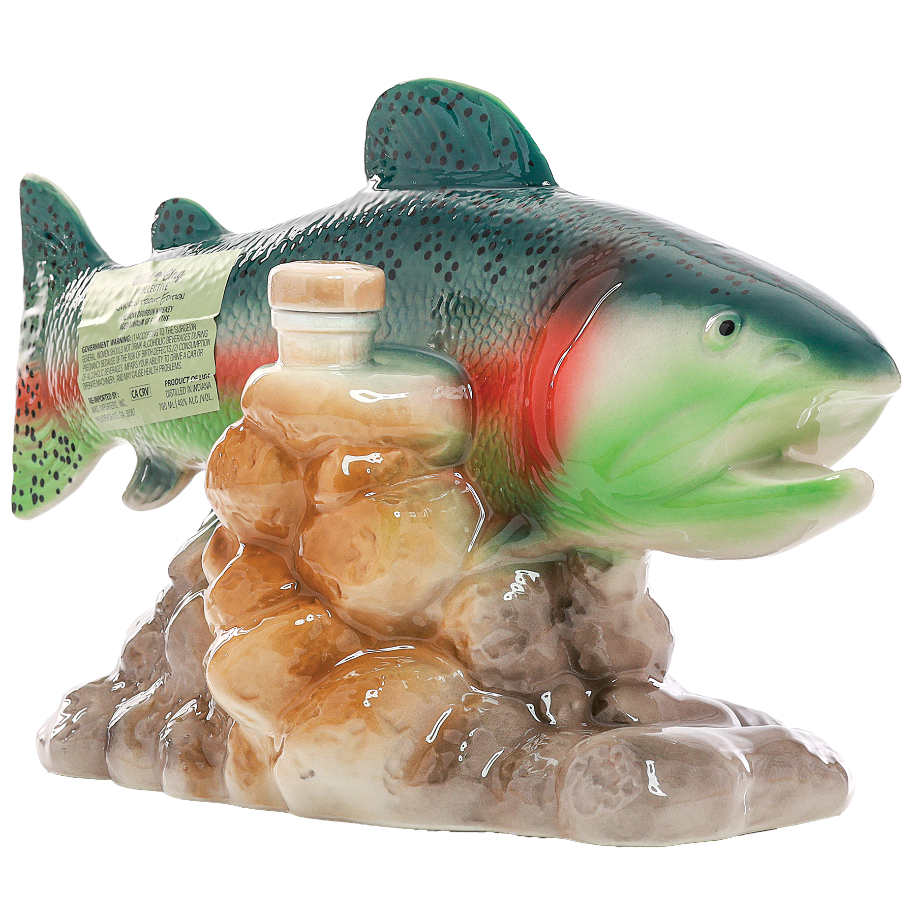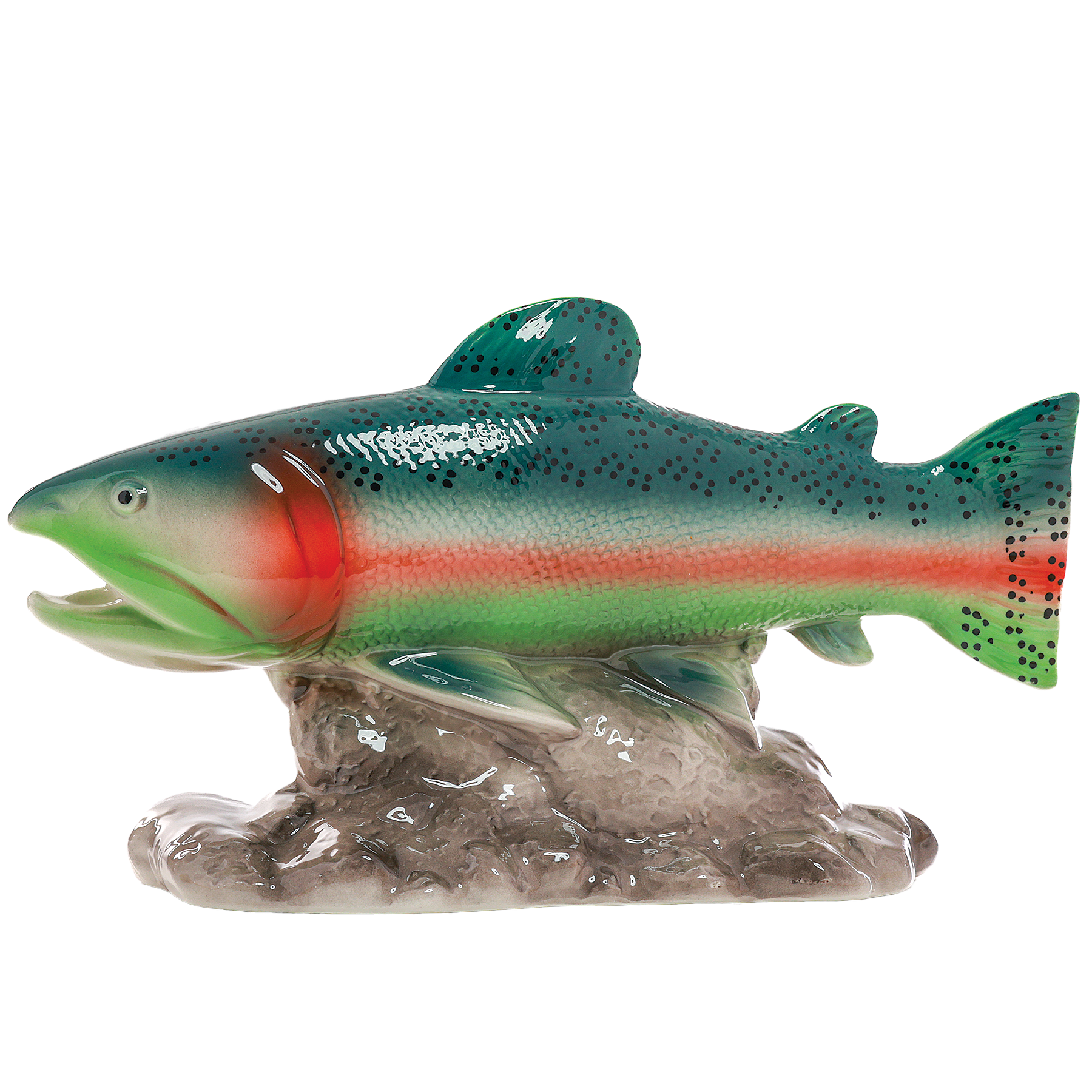 Sleek, speckled, and impossible to ignore, this lifelike ceramic decanter captures the striking colors and regal presence of this jewel of the stream.