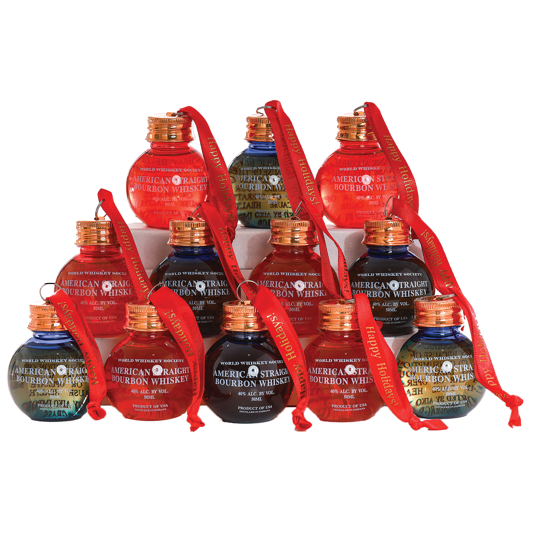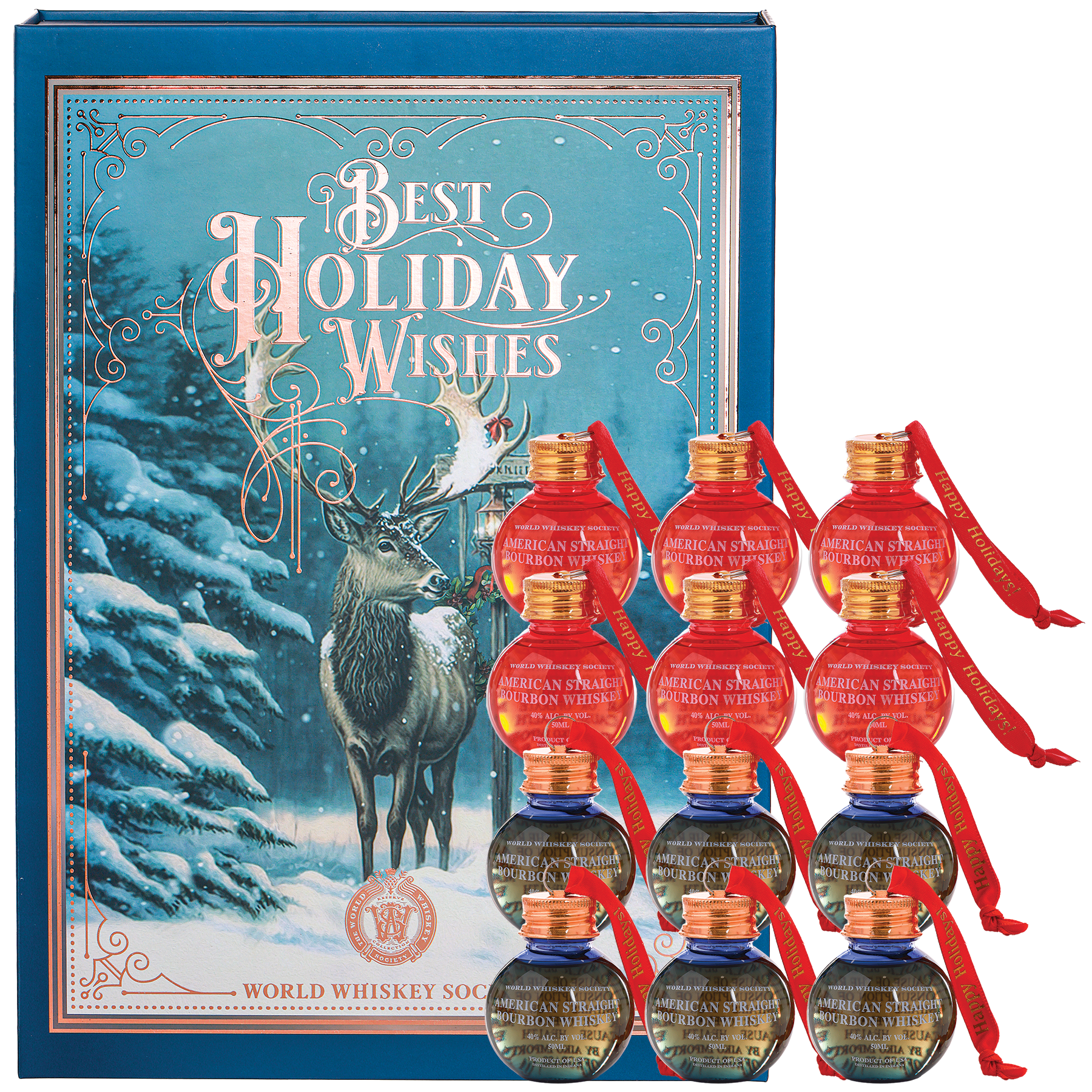 Spread festive cheer with the Best Holiday Wishes Singing Ornament Gift Set from the World Whiskey Society, a limited-edition holiday collection that brings together the finest spirits from around the world. This exclusive set features twelve 50mL ornaments, each containing our signature American Bourbon Whiskey.